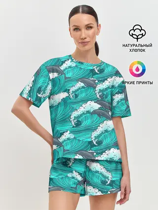 Женская пижама с шортами / Дельфины