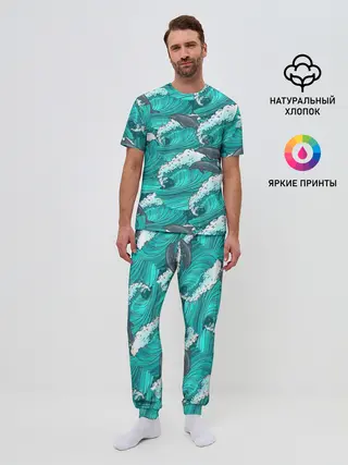 Мужская пижама с брюками / Дельфины