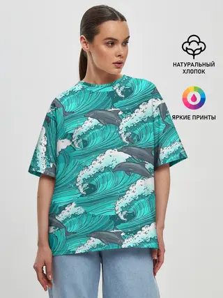 Женская футболка оверсайз / Дельфины