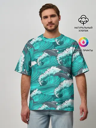 Мужская футболка оверсайз / Дельфины