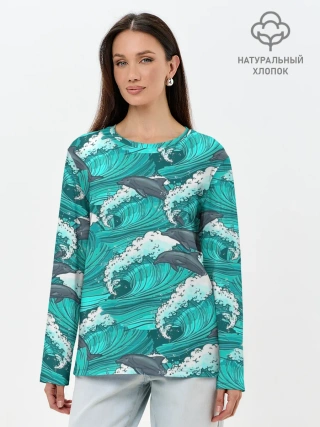 Лонгслив женский. Хлопок / Дельфины