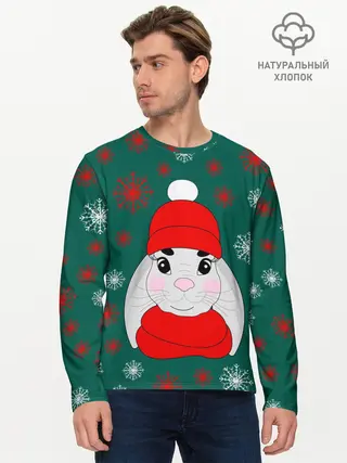 Мужской лонгслив базовый / зимний кролик и снежинки