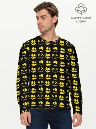 Мужской лонгслив базовый / Прикольные смайлы Хэллоуин / Halloween