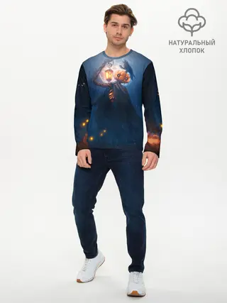Мужской лонгслив базовый / ТЫКВИННЫЙ МОНСТР В ТУМАНЕ / ХЕЛЛОУИН