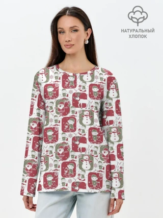 Лонгслив женский. Хлопок / Санта везёт подарки