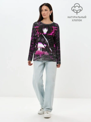 Лонгслив женский. Хлопок / Vinne Yuna Самурай Киберпанк