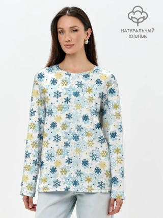 Лонгслив женский. Хлопок / Снежинки Кружатся