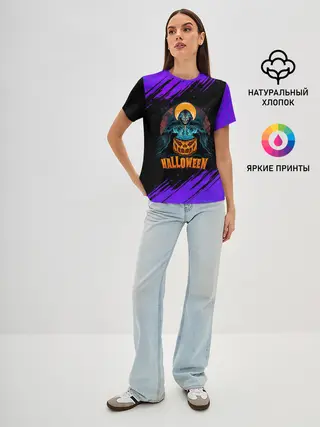 Женская базовая футболка / ВЕДЬМА КОЛДУЕТ НАД ТЫКВОЙ