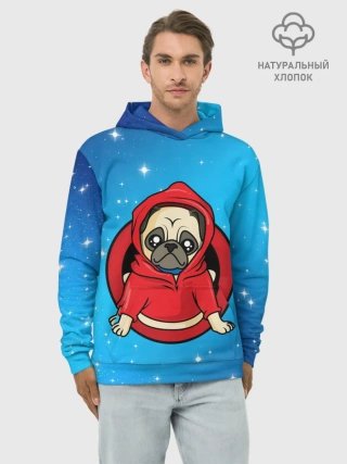 Худи мужской база хлопок / Мопс в толстовке