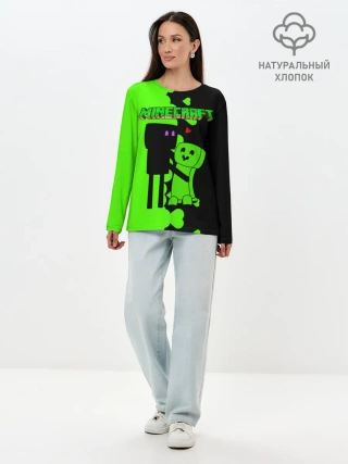 Лонгслив женский. Хлопок / Любовь Эндермена и Крипера Майнкрафт