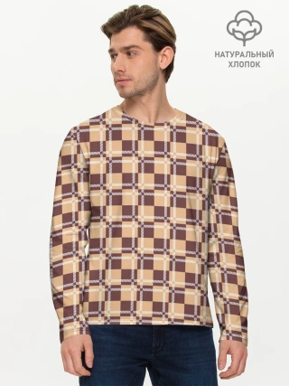 Мужской лонгслив базовый / Коричневые и бежевые квадраты с линями
