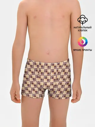Трусы для мальчиков / Коричневые и бежевые квадраты с линями