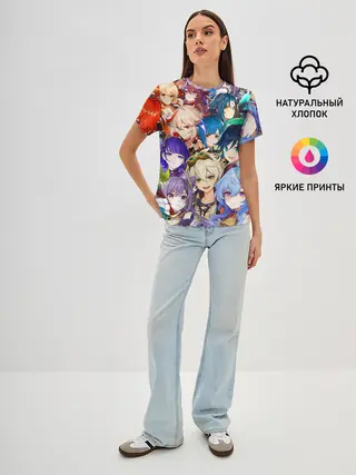 Женская футболка оверсайз / Genshin Impact - персонажи