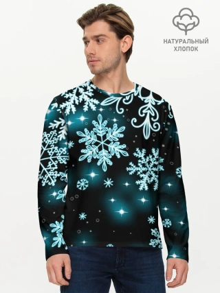 Мужской лонгслив базовый / Космические снежинки