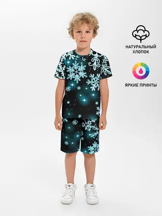 Детская пижама с шортами / Космические снежинки