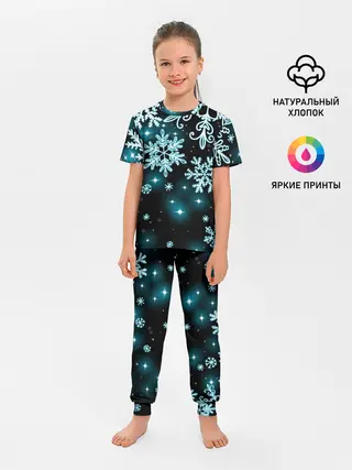 Детская пижама с брюками / Космические снежинки
