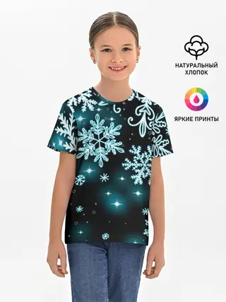 Детская базовая футболка / Космические снежинки