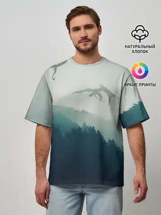 Мужская футболка оверсайз / ДРАКОНЫ НАД ЛЕСОМ / DRAGON