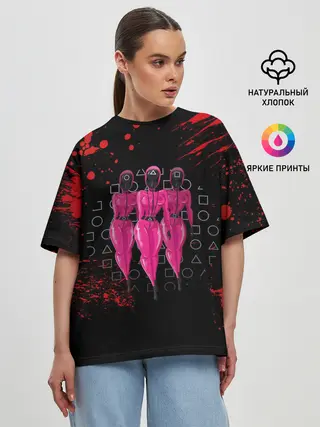 Женская футболка оверсайз / ГОРЯЧАЯ ОХРАНА | КРУГ ТРЕУГОЛЬНИК КВАДРАТ