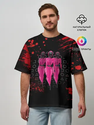 Мужская футболка оверсайз / ГОРЯЧАЯ ОХРАНА | КРУГ ТРЕУГОЛЬНИК КВАДРАТ