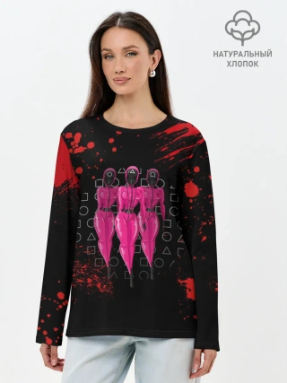 Лонгслив женский. Хлопок / ГОРЯЧАЯ ОХРАНА | КРУГ ТРЕУГОЛЬНИК КВАДРАТ