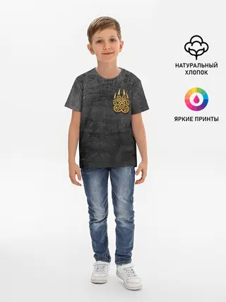 Детская базовая футболка / Волчий отпечаток золотом | Символ Велеса