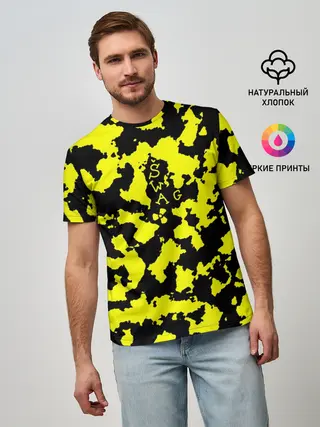 Мужская футболка оверсайз / Черно-желтый камуфляж