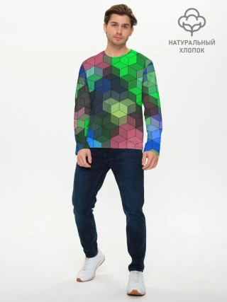 Мужской лонгслив базовый / Разноцветный геометрический уз