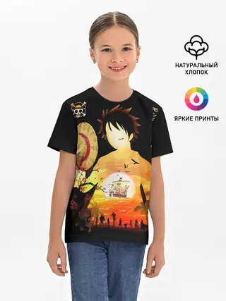 Женская футболка оверсайз / Силуэт Луффи One piece