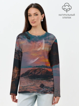 Лонгслив женский. Хлопок / закат на качелях