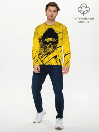 Мужской лонгслив базовый / Череп Хипстер Гранж Брызги