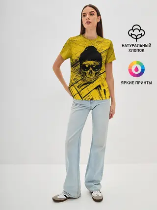 Женская футболка оверсайз / Череп Хипстер Гранж Брызги