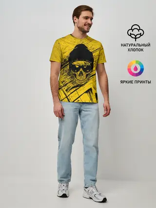 Мужская футболка оверсайз / Череп Хипстер Гранж Брызги