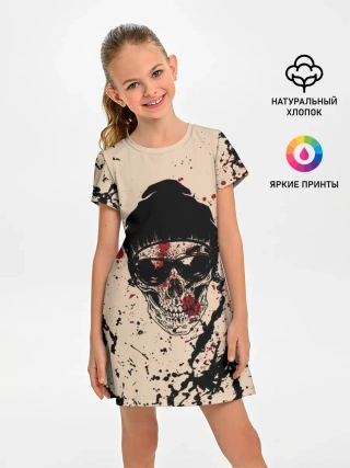 Женская футболка оверсайз / Череп Хипстер Брызги Краски