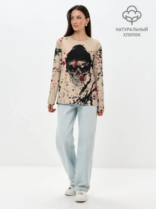 Лонгслив женский. Хлопок / Череп Хипстер Брызги Краски