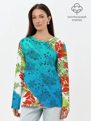 Лонгслив женский. Хлопок / ЛЕТНИЕ КРАСКИ | ТРОПИКИ / SUMMER / МОРЕ