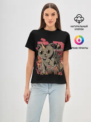 Женская базовая футболка / АНИМЕ КОТ-ЕДИНОРОЖЕК