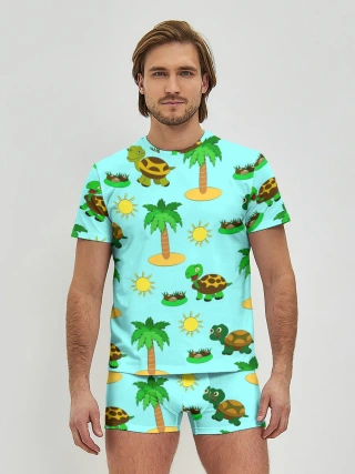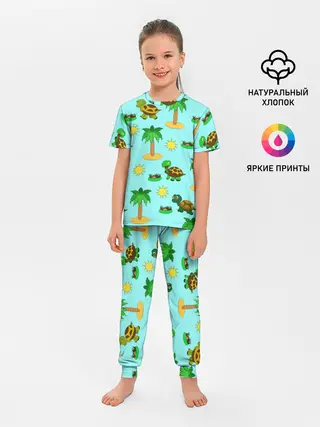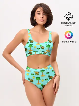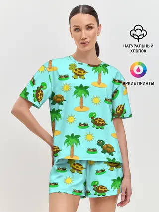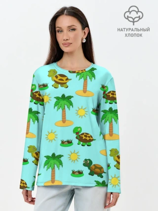 Лонгслив женский. Хлопок / черепашки и пальмы