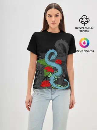 Рюкзак джинсовый / Китайский Дракон и Сакура
