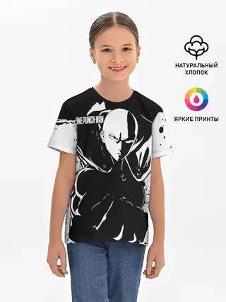 Детская базовая футболка / Черно-белый Сайтама One Punch-Man