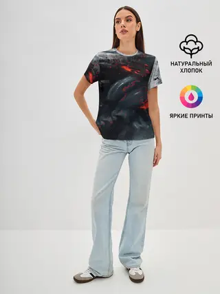Женская базовая футболка / ЧЁРНЫЙ СИМБИОТ / ГРАНЖ / BLACK MONSTER
