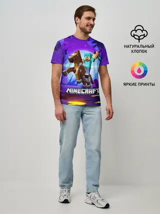 Мужская футболка оверсайз / Minecraft на коне!