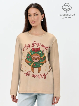 Лонгслив женский. Хлопок / Ленивец Новый год