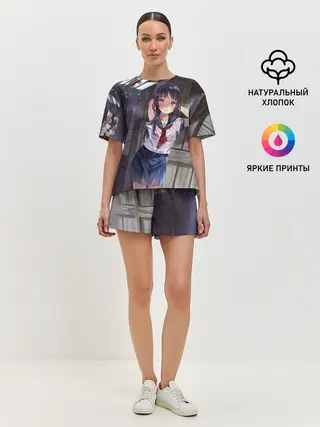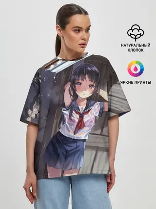 Женская футболка оверсайз / Летний дождь