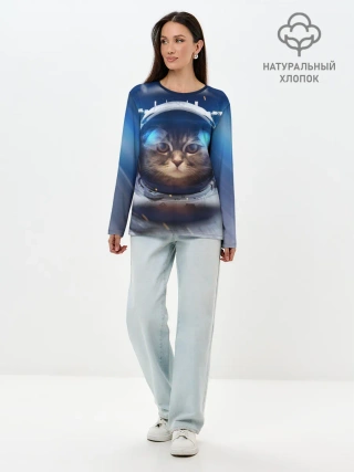 Лонгслив женский. Хлопок / КОТ АСТРОНАВТ