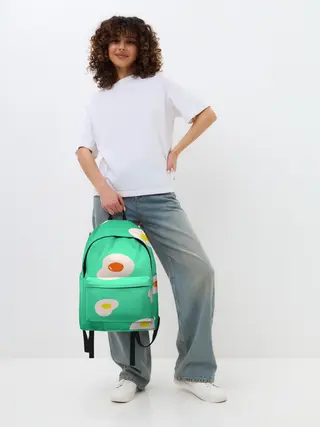 Рюкзак джинсовый / Яйца на Зеленом Фоне