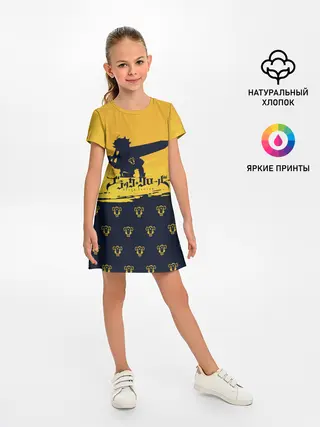 Детская базовая футболка / Чёрный клевер Аста желтый