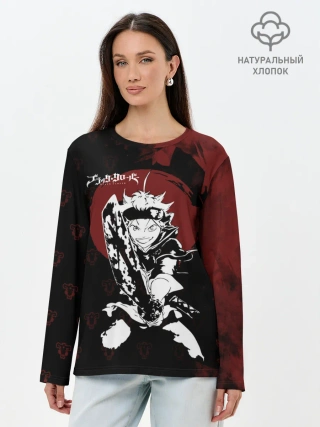 Лонгслив женский. Хлопок / Чёрный клевер Аста с мечом
