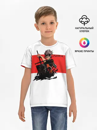 Детская базовая футболка / Чёрный клевер Аста красная полоса