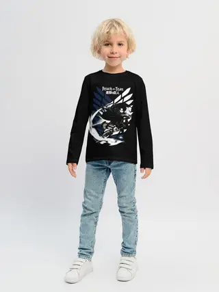 Мужской лонгслив базовый / Леви Акерман на фоне герба